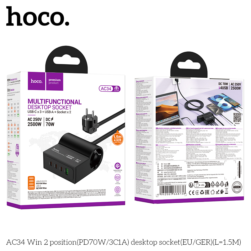 1 CFAAjouter au panierMatériau : PC ignifuge Puissance : USB-C 165 W (PO/QC/FCC/AFC) : USB-C2 : 20 W (PO/OC/FCP/AFC) : USB-A : 18 W (QC/FCP/AFC) : USB-C1+US8-C2 : 65 W : USB-C1+USB-A : 63 W : USB-C2+USB-A : SV/3A : US8-C1+(US8-C2+US8-A) : 45 W+15 W Prise UE Dimensions : 86 + 47 + 30 mm, Poids : 116 g